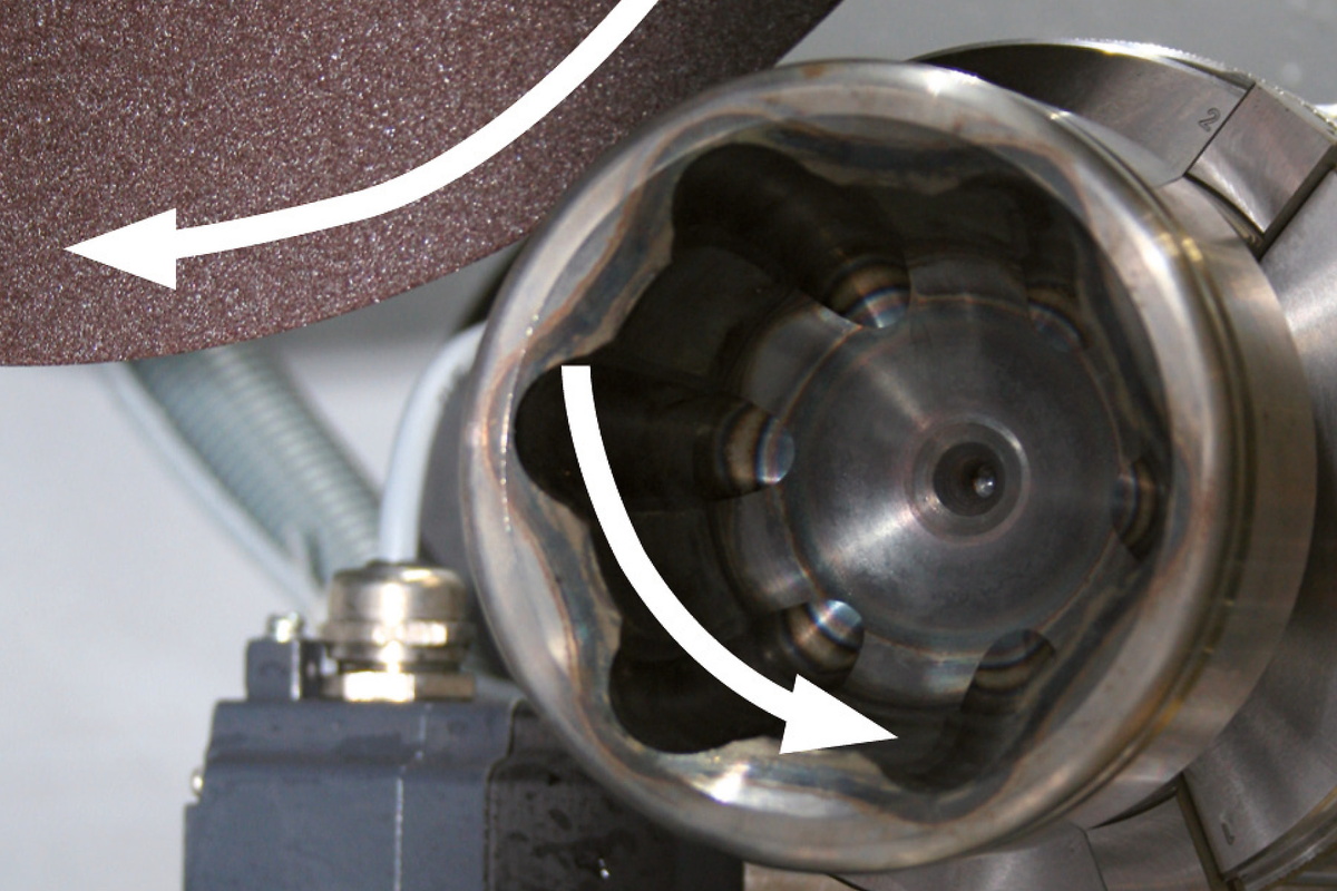 The optional rotation tool features a vertical rotary feed parallel to the wheel with software-controlled angle input.