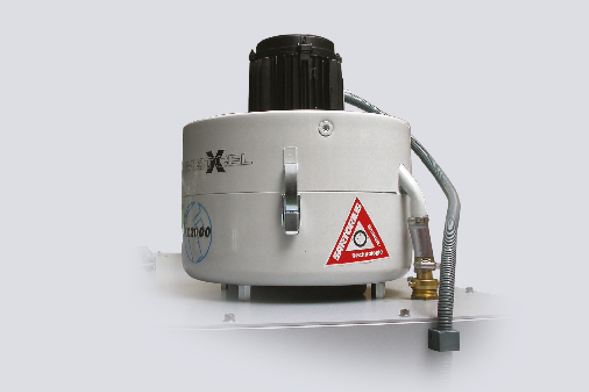 Large cooling and filter system for continuous operation, e.g. in serial applications.