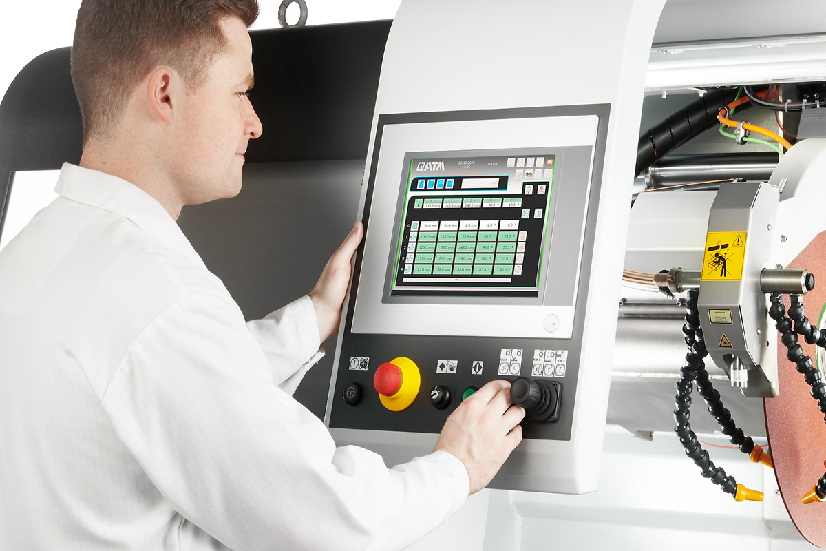 12.1英寸大型工业触摸屏,配备有直观的QATM 用户软件,操纵杆和急停按钮。